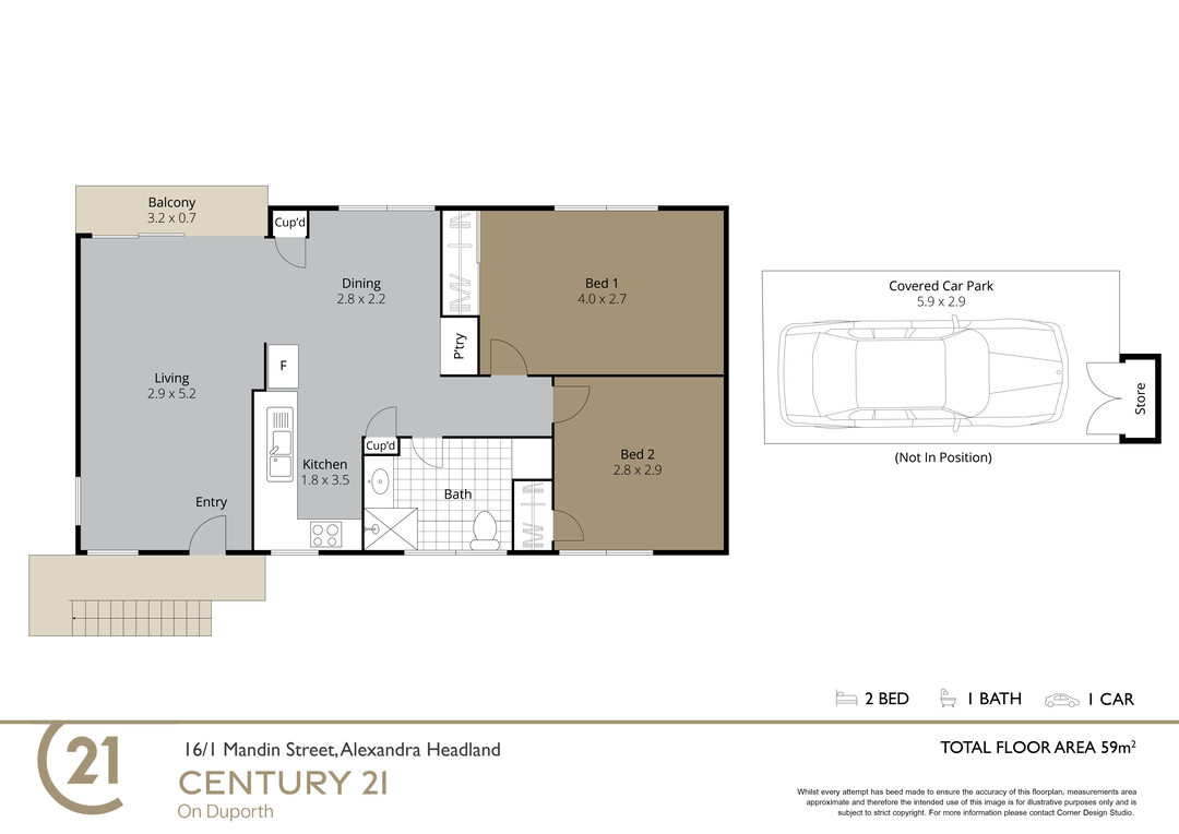 - Floor area approx 59sqm