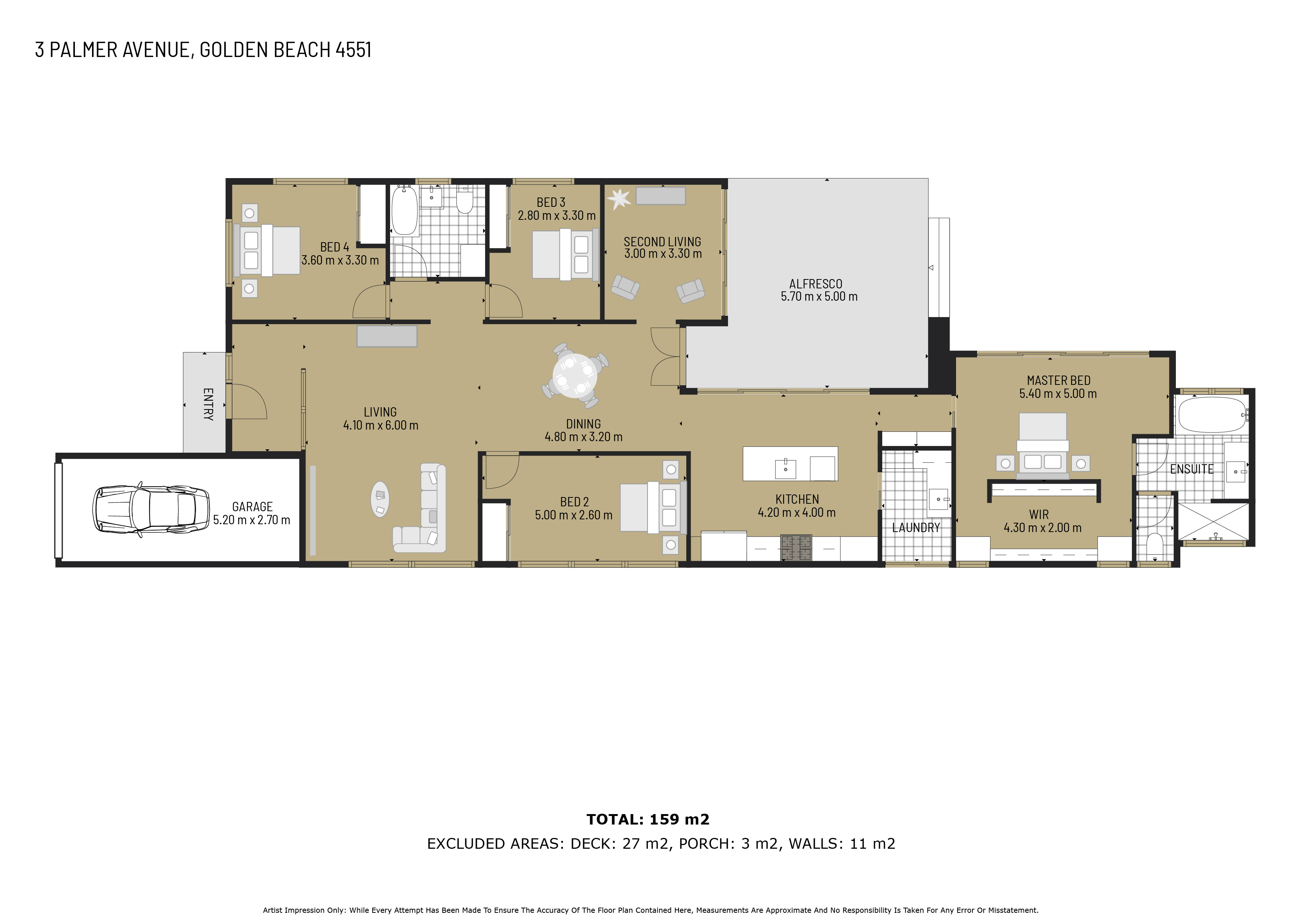 Four-Bedroom, Two-Bathroom Family Home On A Generous 607m² BlockSparkling Inground Pool With An Easy Connection To Living & Entertaining SpacesExpansive Entertaining Deck, Perfect For Family Gatherings & Outdoor DiningTiled Living Area At The Front Of The Home — Low-Maintenance & Air-ConditionedTimber Shutters Adding Coastal Charm & PrivacyFrench Doors From The Dining Area Opening Directly To The Outdoor DeckSecond Living Space Off The Dining Room, Ideal For Families Needing Extra SeparationImpressive Central Kitchen Featuring: Stone Benchtops With Waterfall-Edge & Quality AppliancesBedrooms Carpeted With Ceiling Fans, Serviced By A Neat Main BathroomMaster Suite Positioned Privately Away From Other BedroomsFlat, Low-Maintenance Yard With Tidy Gardens And Excellent Use Of SpaceSingle Car Accommodation With Scope For Further Enhancements Or Side AccessLocated Moments From The Pumicestone Passage, Cafés, Schools & Golden Beach Pathways